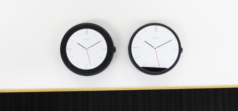 หน้าจอที่เหมือนจะกลมแต่ก็ไม่กลมนี้ได้มีการพูดถึงเป็นอย่างมากว่าทำไม Moto 360 ถึงไม่ทำหน้าปัดกลมๆไปเลย จะตัดเป็นขอบทำมะเขือพวงอะไร แต่จริงๆแล้วก็เพื่อจะใส่ Sensor ต่างๆไว้ในนี้นั่นแหละ ลองสังเกตดีๆจะเห็นว่าขอบของหน้าจอนั้นบางมาก ดังนั้นถ้าทำขอบบางโดยรอบ จะทำให้ไม่สามารถใส่ Sensor บางตัวได้ ดังนั้นถ้าอยากให้หน้าจอกลมจริงๆก็จะต้องทำขอบหนาๆแทน แอบดูหน้าตาเครื่องต้นแบบ Moto 360 ก่อนจะเป็นแบบที่เราเห็นในปัจจุบัน