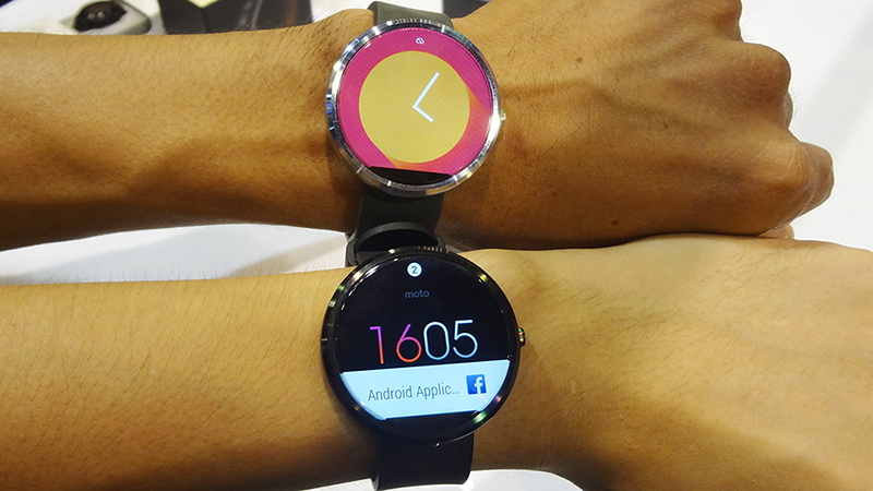 Moto 360 จาก Motorola เรียกได้ว่าเป็น Android Wear ตัวแรกเลยก็ว่าได้ ซึ่งได้เปิดตัวพร้อมกับ Android Wear มาตั้งแต่ต้น แต่กว่าจะวางจำหน่ายก็นานแสนนานเหลือเกิน จน LG G Watch และ Samsung Gear Live ที่ออกมาตามหลัง ก็ได้ชิงจำหน่ายไปก่อนแล้ว