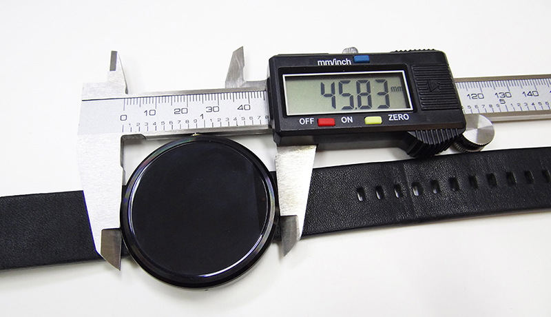 และตัวเรือนมีเส้นผ่านศูนย์กลางประมาณ 46 mm และหนาประมาณ 12 mm