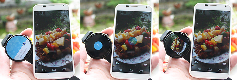 และถ้าใช้ควบคู่กับ Google Camera ก็จะสามารถสั่งถ่ายด้วยการแตะบนหน้าจอ Moto 360 ได้ แต่ล่าสุด Motorola Camera ออกอัพเดตใหม่ ทำงานได้เหมือน Google Camera ก็จริง แต่สามารถ Preview รูปหลังถ่ายได้ด้วยนะเออ