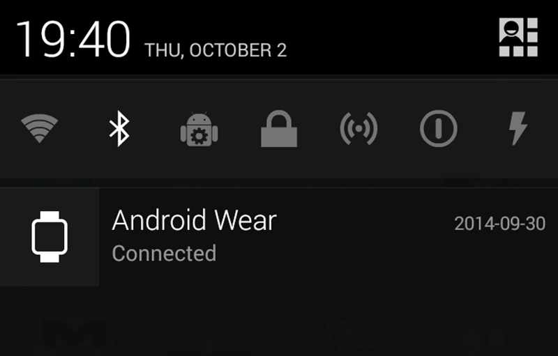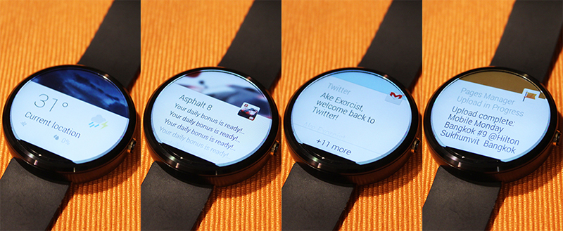 เรียกได้ว่า Notification ที่เด้งขึ้นบน Handheld จะถูกส่งมาที่ Moto 360 แทบทุกอัน อันที่ไม่ขึ้นก็จะมี Notification ที่แสดงค้างอยู่บนนั้นตลอดเวลา เช่น Power Toggle หรือของ Android Wear เอง
