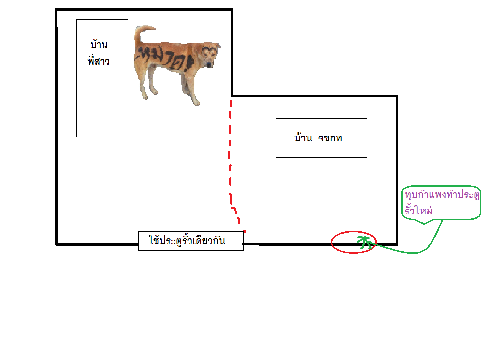 เลยคิดว่าอยากลองทำรั้วกันหมาแบบไม่ต้องใช้งบสูงเพราะไม่อยากทำเป็นแบบถาวรตามเส้นประสีแดง