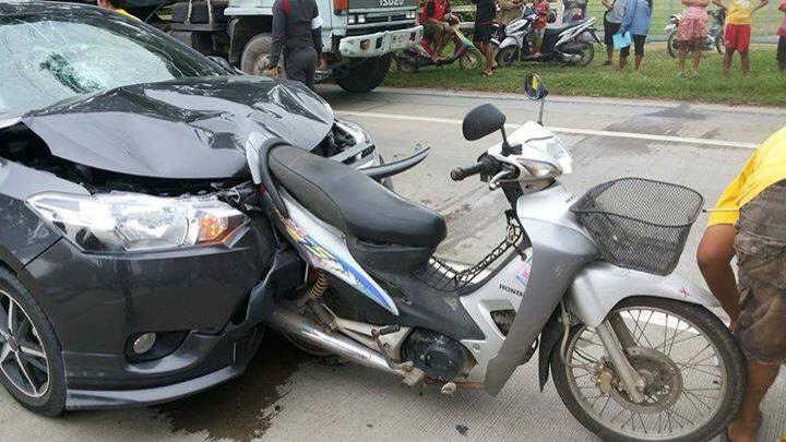 ภาพรถเก๋งชนมอร์ไซค์แม่บ้านแต่ทำมันรถเก๋งถึงได้เละขนาดนี้..ขอถามแฟนพันธุ์แท้ว่ารถเก๋งในรูปนี้ยี่ห้ออะไร รุ่นอะไร???????