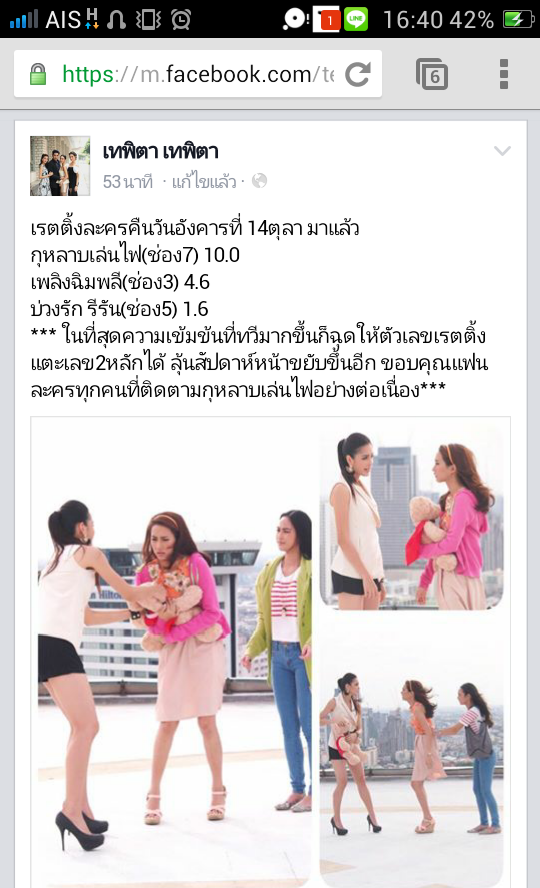 ในที่สุด กุหลาบเล่นไฟ เรตติ้งขึ้น 10.0 ซะที่ ปลื้มปริ่มบอกไม่ถูก(มีเรตติ้งเรื่องอื่นด้วย)