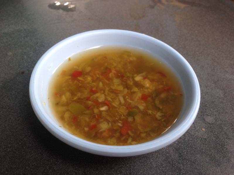 จิ้มน้ำจิ้มที่ให้มา เปรี้ยว เผ็ดหน่อยๆ กลมกล่อมเข้ากันครับผม