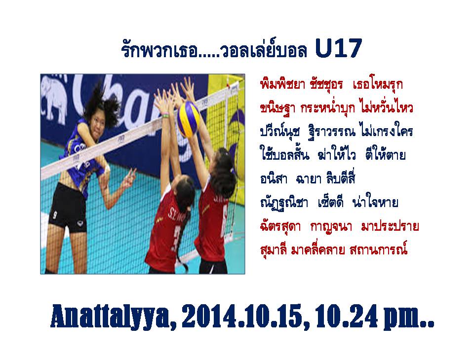 แด่นักวอลเล่ย์บอลทีมชาติหญิงไทย อายุไม่เกิน 17 ปี...อาจไม่ครบคนแด่พี่แต่งให้ตามความประทับใจในเกมส์.....