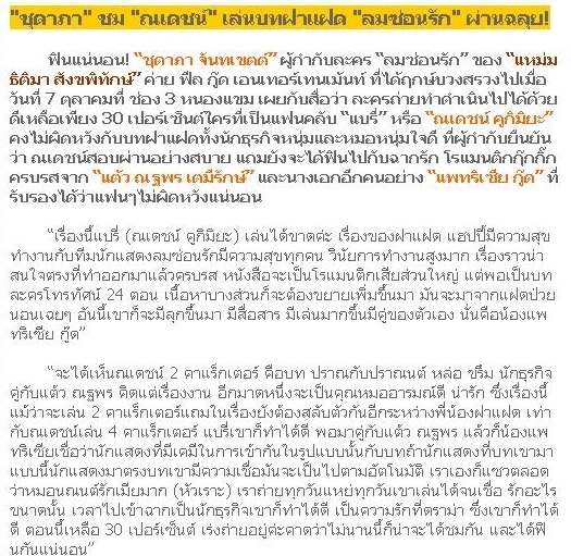 **** ปล. ส่วนสำคัญที่สุด.. คือไม่มีใครรู้หรอกค่ะว่าละครจะประสบความสำเร็จมั้ย จนกว่าละครจะออน ละครฟอร์มดีๆ แป๊กมาก็เยอะ