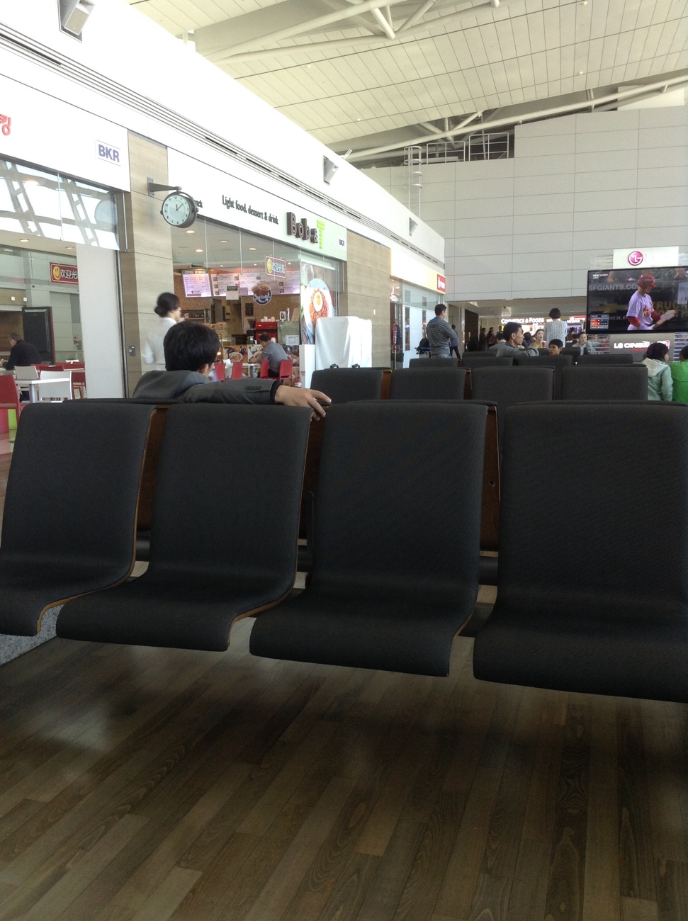 ตอนนี้นั่งรอเปลี่ยนเครื่องที่เกาหลี เห็นผู้หญิงเดินมากลุ่มหนึ่งสักสิบคน (นั่งอยู่ไกล ไม่กล้าถ่ายใกล้) ไม่น่าเชื่อทั้งสิบคนทำผมทรงเดียวกันหมด (มัดจุกไว้ด้านหลัง) แต่งหน้าคล้ายกัน แต่ที่สำคัญทุกคนหน้าเกือบเหมือนกันหมดเลย สุดยอดจริง ราวกับถอดพิมพ์มาเลย