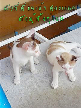 และตอนนี้พวกมันค่อนข้างผอม และวันนี้กลับบ้านมาลูกแมวที่ออกไปเที่ยวนอกบ้าน โดนหมาวิ่งไล่ เลยอยากให้มันไปอยู่กับคนที่พร้อมดูแล