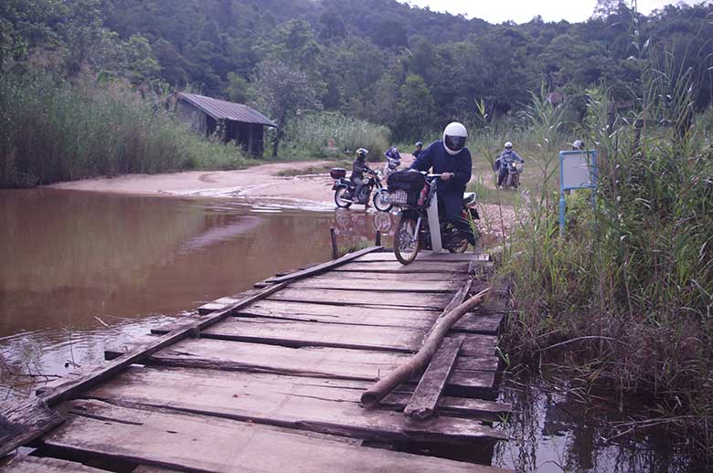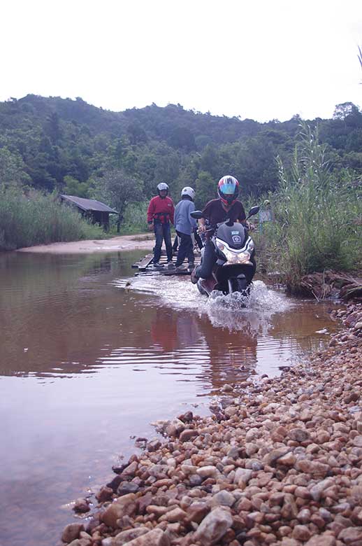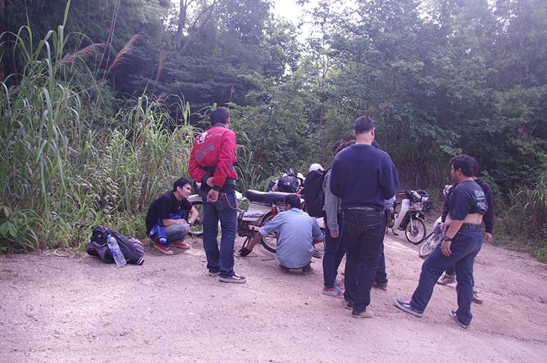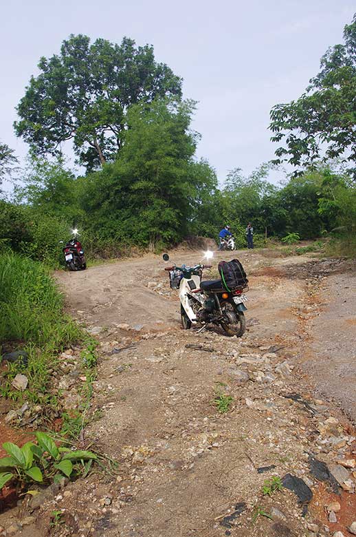 ด้วยความที่ถนนโดนน้ำกัดเซาะ และเป็นทางเนินชัน แถมคนซ้อนตัวก็ไม่ได้เล็กเลยทำให้แรงของรถลดน้อยลง