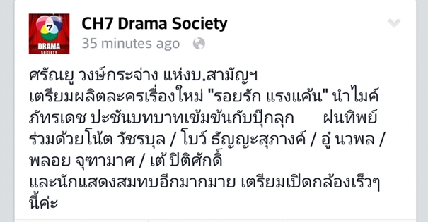 รายชื่อนักแสดง รอยรักแรงแค้น จากเพจ Ch7dramasociety