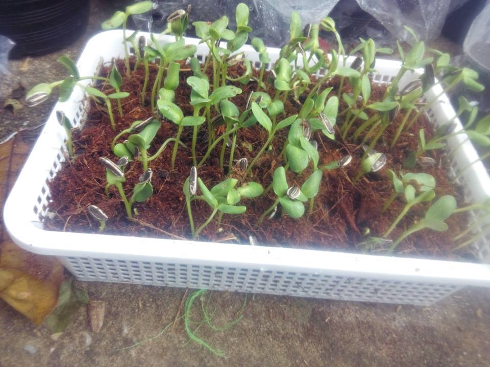 ผม ลองหาเมล็ดทานตะวัน ที่พื้นที่ที่ผมอยู่ มาเพาะ เอง เมล็ดลายใหญ่ ครั้งแรก ก็เพาะงอกดี แต่ขึ้นไม่เท่ากันครับ
