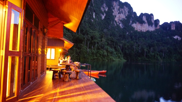 กว่าจะกลับมาถึงแพ ก็เย็นแล้ว กว่าจะอาบน้ำกันเสร็จก็ได้เวลาอาหารเย็นพอดี บรรยากาศช่วงหัวค่ำที่แพนี่คือดีงามมมม