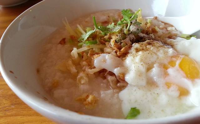อาหารเช้าพร้อมตั้งแต่ 7 โมง จานหลักเป็นโจ๊ก ไข่ลวก ชา กาแฟ โอวัลติน ขนมปังปิ้ง ประมาณนี้ค่ะ