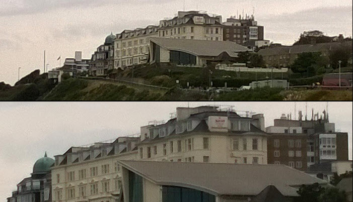 จากภาพถ้ามองแบบไม่ครอปจะพบว่าความแตกต่างนั้นหาได้ยากพอสมควร แต่เมื่อครอปเข้าไปจะพบว่า Lumia 1020 ทำได้ดีกว่า Lumia 830 แต่แน่นอนว่าภาพจาก Lumia 830 นั้นทำออกมาได้ในระดับที่น่าพอใจ