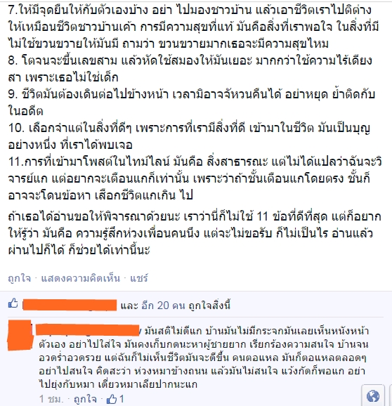 เห็นหลายทีบางทีคนดังโพสต์ในโซเชียลพอมีคนเห็นต่าง เขียนแบบหวังดี เช่น ตอบว่าควรจะงดสูบบุหรี่ กลับไปด่า เขาว่า ส สระเอือ ก ไก่ หรือบางคนตอบแบบเห็นต่าง ว่า ไม่ควรยิ้มในงานศพ ก็ เอาเฟส เอาคอมเม้นท์เขามา