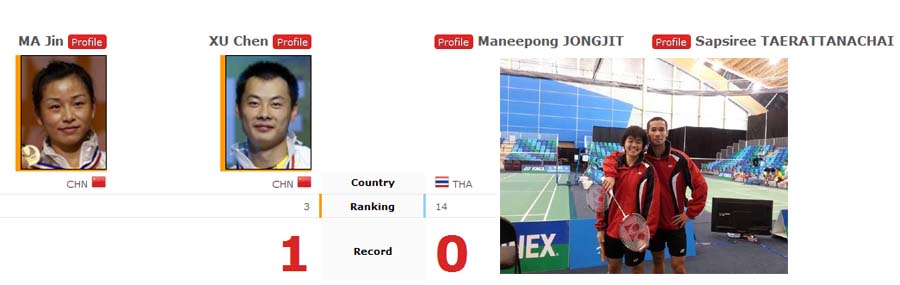 [XD] Xu Chen-MA Jin vs Maneepong-Sapsiree แข่งคู่ที่ 6 โดยคู่แรกแข่งเวลา 20.30 น. (คอร์ท 2)