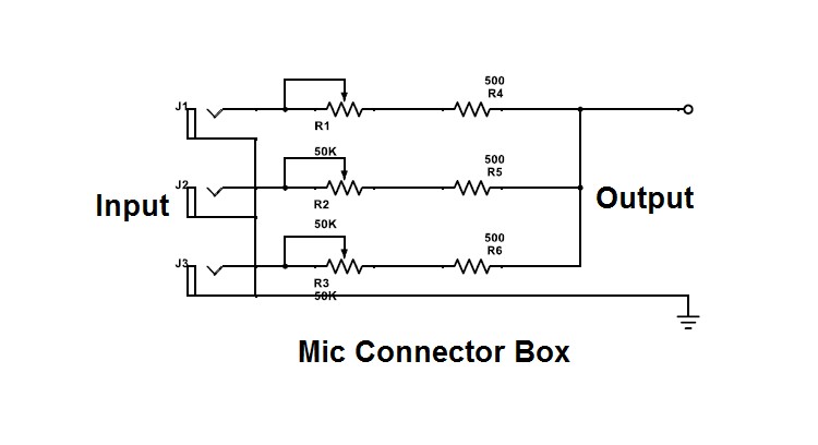 วงจรจากกล่องรวมสัญญานไมค์ ซึ่งผมลองแกะออกมาดู วาดออกมาเป็นไดอแกรม ได้แบบนี้ครับ