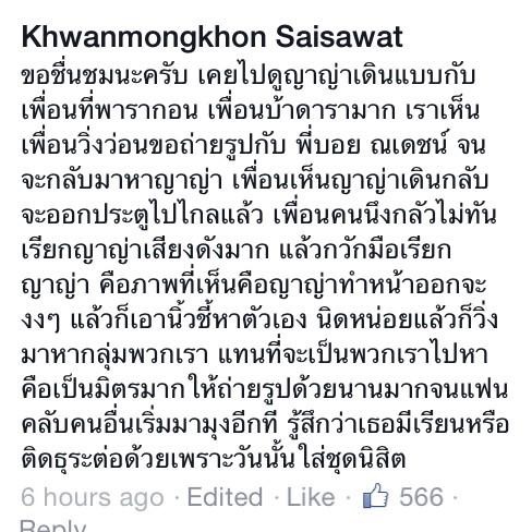 ญาญ่าเป็นต้นแบบดีๆหลายอย่างให้กับเด็กๆ รวมถึงผู้ใหญ่ด้วย ทั้งในเรื่องความคิดและการกระทำ ถ้าใครที่ติดตามบ้างก็คงเห็น ถ้าไม่มีอคติจนเกินไป