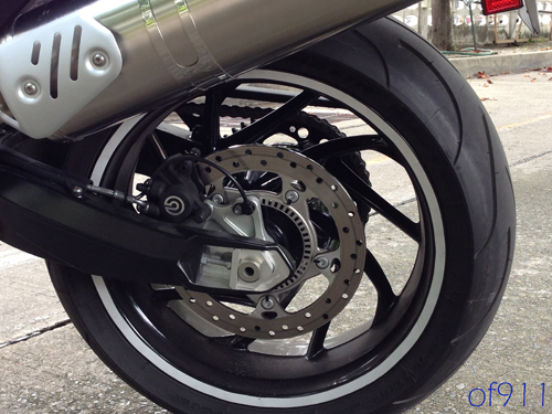 12.ยางหลังไซต์ 180/55 17 และยางติดรถคือ Michelin Pilot Power (ว่าแต่เดี๋ยวนี้เขาไป Power 2CT, Power 3 กันแล้วนิ)