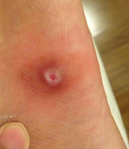 แผลนี้ของหนูเป็นเพราะขามันไปขูดกับพลาสติกแข็งๆหนังมันลอกแล้วพอหนูรักษาไปรักษามา มันก็ตกสะเก็ดแผล แล้วหนูก็ดื้อไปแกะแผลก็เป็นสีชมพูแล้วเวลาผ่านไปวันสองวันก็เริ่มมีจุดสีดำๆขึ้นรอบแผลแล้ว2-3วันรอยสีดำเล็