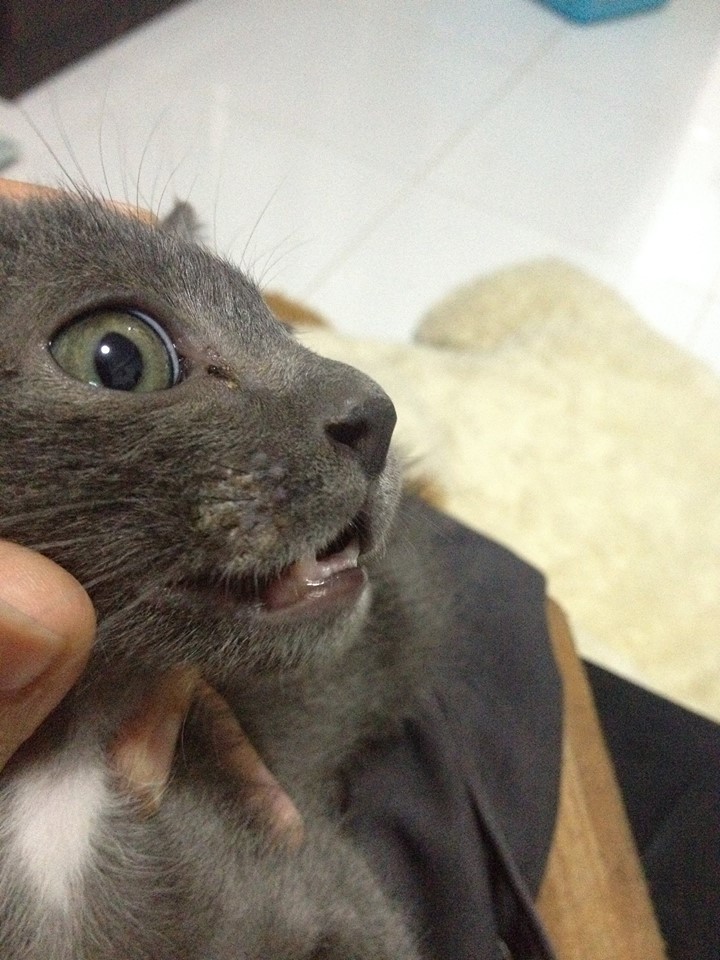 จู่ๆวันนี้ ก็สังเกตรอยแปลกๆรอบโคนหนวดน้อง ไม่แน่ใจว่าน้องเป็นอะไร เลยเซิชๆดู เห็มีเชื้อราเป็นโรคยอดฮิต และ พอดีช่วงนี้เป็นสัปดาสอบของผม เลยยังไม่มีเวลาว่างพาน้องไปหาหมอเลยครับ (บวกกับช่วงเกือบปลายเดือน ไม่มีเงิน T^T)
