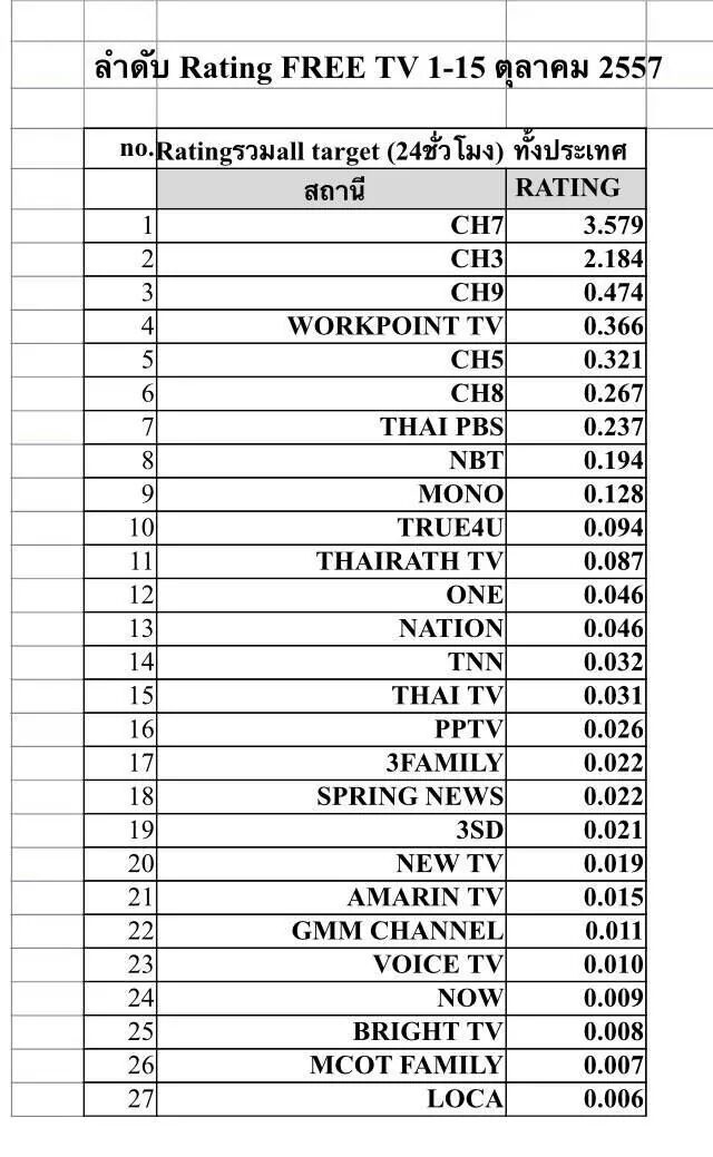 เรตติ้ง TV ทั่วประเทศ 1 - 15 ตุลาคม 2557