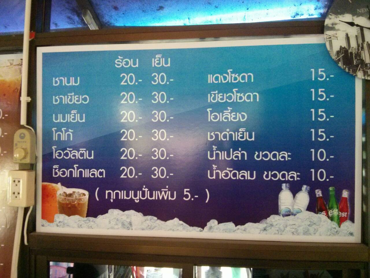 ราคา ก๋วยเตี๋ยวเกาเหลาชามละ 30.- 5 ชาม 150.- ข้าว 10.- น้ำ 10.- รวม 170.- ส่วนของหวานถ้วยละ 20.- 3 ถ้วย 60.- ทั้งหมดมื้อนี้ 230.-
