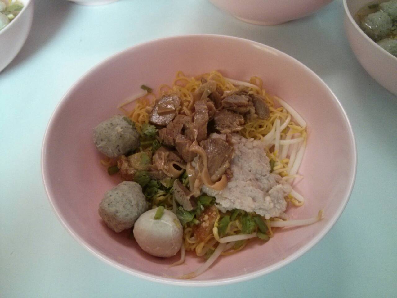 หมี่เหลืองต้มยำเนื้อรวมไม่งอก ได้มาก็กินลูกชิ้นก่อนเป็นสิ่งแรก ไม่ต้องใส่ถั่วงอกมาให้กลิ่นรบกวน 55555 ร้านก๋วยเตี๋ยวลูกชิ้นแชมป์ แต่เค้าก็มีก๋วยเตี๋ยวหมูขายด้วย แต่เนื้ออร่อยกว่า ลวกแบบสุกสนิท น่าจ