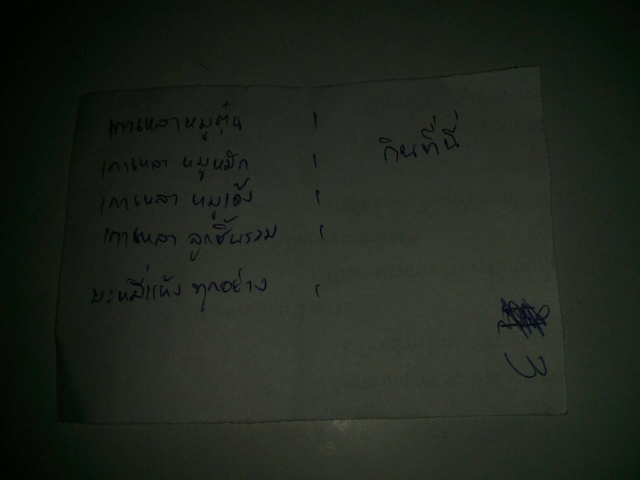 เมื่อวานไปที่ร้านนี้แล้วเหลือแต่ลูกชิ้นเลยได้รีวิวร้าน เมื่ยงปลาเผาผักสด(ร้านเมื่ยงปลาเผาที่นี่มีหลายร้าน วันนี้ขับรถผ่านอีกเจ้า) วันนี้เลยไปแก้มือยื่นโพยที่เขียนเมื่อวานให้เลย แก้แค่เลขโต๊ะ อ้อ เพิ่มข้าวอีกจาน