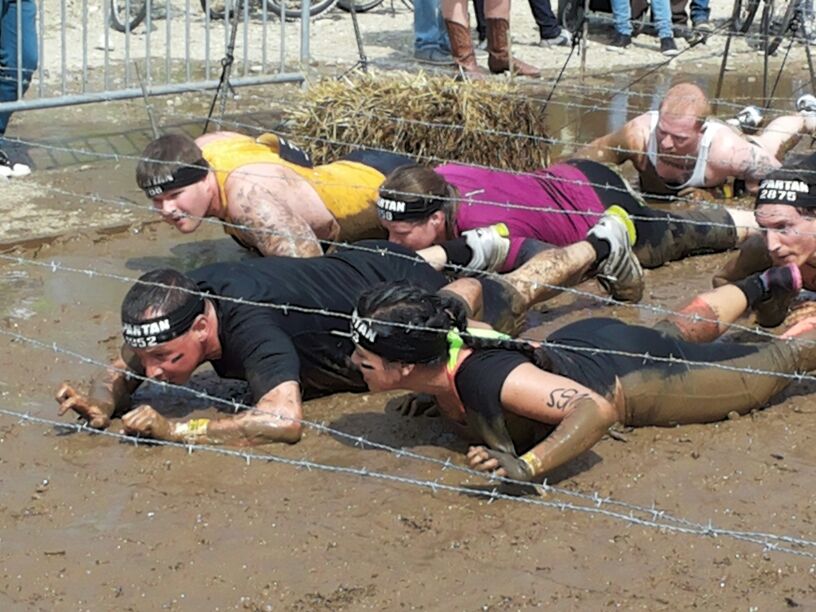 3. Muscular endurance จริงๆอันนี้ค่อนข้างจะคาบเกี่ยวกับสองข้อก่อน แต่เนื่องจากในการแข่ง ไม่ใช่คนที่สามารถยกน้ำหนักได้มากที่สุด หรือวิ่งได้นานที่สุดจะเป็นผู้ที่แข่งได้ดีที่สุด แต่ในraceจริงๆ สิ่งที่เกิดขึ้นคือ เราจะต้องวิ่งในสภาพสนามที่ลื่น และขรุขระมาก แถมยังวิ่งขึ้นลงภูเขาตลอดเวลา วิ่งสักพักก็จะต้องปีนกำแพงสูง 2 เมตรกว่า ลงมาวิ่ง มาเจอด่านแบกหิน 20 โลขึ้นทางชัน วิ่งๆๆ ถึงmud crawl คลานๆๆ50-100 เมตรบนโคลนใต้ลวดหนาม กลับมาวิ่งต่อ เจอด่านปีนเชือก สลับกันไปเรื่อยๆแบบนี้เป็นเวลา 3 ถึง 4 ชั่วโมง เพราะฉะนั้นกล้ามเนื้อจะต้องมีความพร้อมกับการเจอกับงานที่ทั้งหนักและนานเหล่านี้ค่ะ