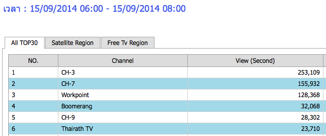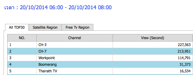 rating เช้า วันที่ 20 ตุลาคม นี้ เวลา 06:00-08:00 น. ซึ่งเป็นเวลาข่าวเช้า