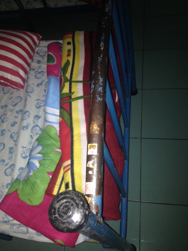 เตียงเหล็ก หก ฟุต ของเรา ก็ยังสวยดี ก้มไปดู ใต้เตียง................พบว่า.............. เหยยย ฉันเคยกินอะไร หกเลอะ ขอบเตียง นานแล้วนะเนี่ย ขึ้นสนิมเลย สนิมขึ้น