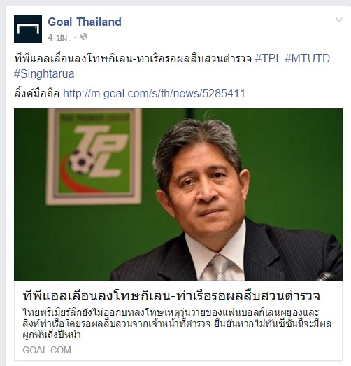 ที่มา http://www.goal.com/th/news/4280/ฟุตบอลไทย/2014/05/13/4814832/ลีท่าเรือโดน4นัดปรับ1แสนกูปรีมีงู1หมื่นเลื่อนฟันเซราะกราวกิเลน ประเด็นสำคัญ บ.ไทยพรีเมียร์ลีกกฏเหล็ก! ผช.พลังเอ็มชูนิ้วอัปลักษณ์ ใส