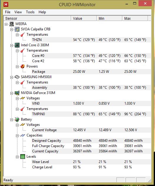 พอเปิดดูความร้อนกับ HWMonitor มันก็เป็นผลอย่างนี้