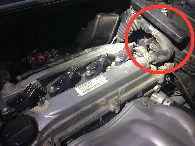 1 ท่อนี้ต่อเข้าไประบบอากาศก่อนวาล์วปีกผีเสื้อ คือท่ออะไรครับ , แล้วเจ้า แท่งๆ สีดำนั้นคืออะไรครับ