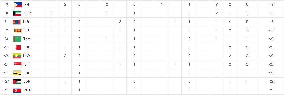ได้มาแล้วครับ สำหรับทีมชาติไทย 6 เหรียญทอง, 12 เหรียญเงิน และ 16 เหรียญทองแดง ตอนนี้ผมอยากชมการแข่งขันของพวกเขามากเลย แต่ยังหา Link หาอะไรไม่ได้ ถ้าท่านใดพอจะมี รบกวนช่วยลง Link ให้ด้วยนะครับ อยากจะตามนักกีฬาไทยไปให้ถึงที่สุด (เดี๋ยวว่าง ๆ มาลงให้ว่าเราได้จากกีฬาอะไรบ้าง