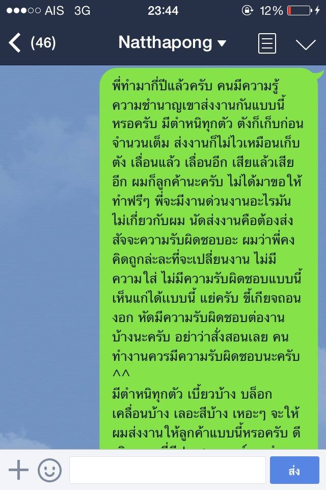 คือผมมองว่าต่อให้งานใหม่จะได้เงินเยอะขนาดไหน แต่งานที่รับมาก่อน ควรทำให้เสร็จก่อนมั้ย? หรือเรียงลำดับความสำคัญตามจำนวนเม็ดเงิน คือคุณเก็บเงินพี่ผมไปเรียบร้อยแล้ว แต่งานไม่เสร็จ ผลัดมาเกือบจะชนอาทิตย์อยู่แล้วอ่ะ