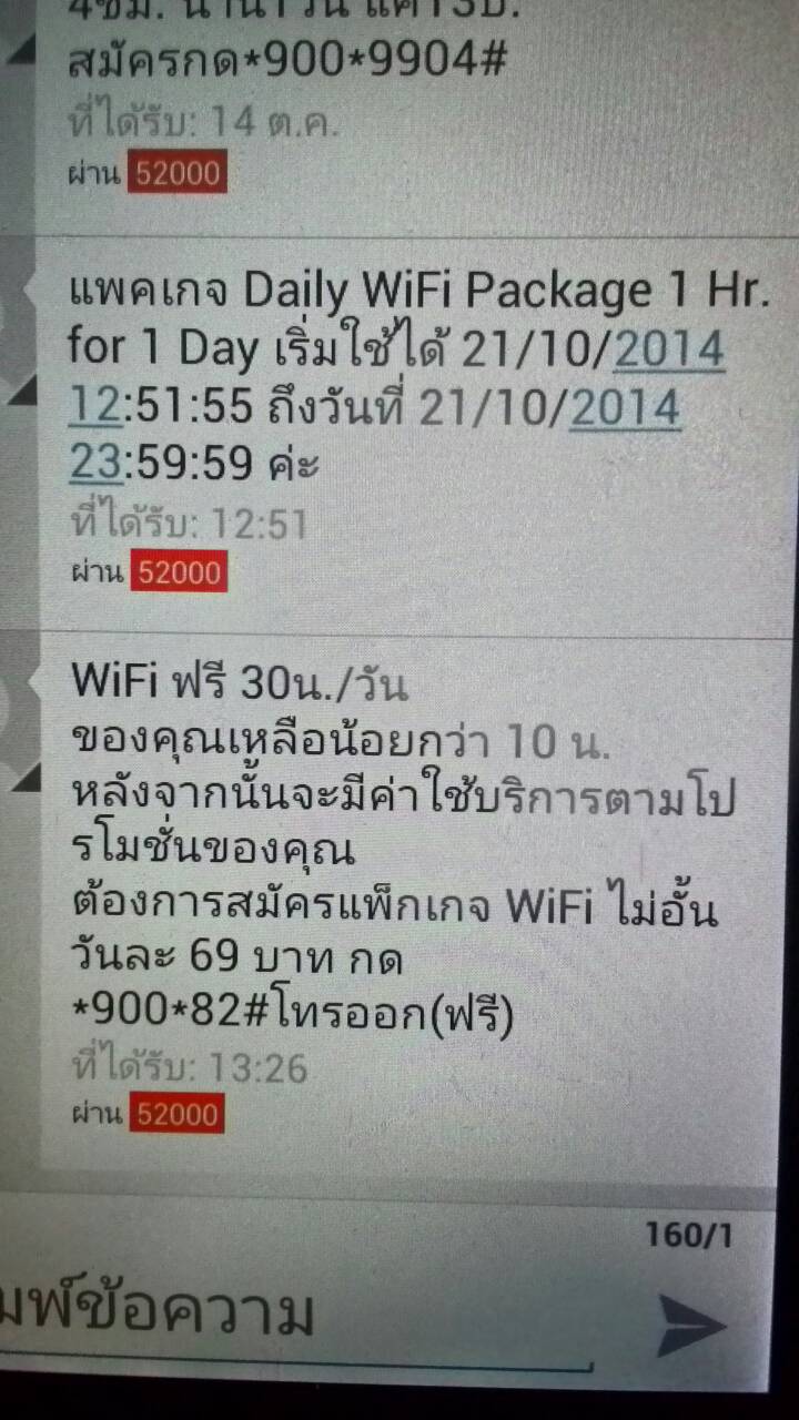 Truemove-h ส่ง message มาเตือนเรื่อง wifi ทั้งที่สมัครโปร Smart 899