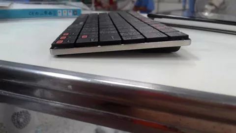 แต่ไม่ครับ ถึงจะเล็ก บาง แต่ไม่ก๋ก๋องแก๋งครับเพราะฐานซึ่งเป็นโครงของคีย์บอร์ดทำจากอลูมิเนียมปัดเงาอย่างดี หนาใช้ได้เลย หากต้องการจะบิดจะงอก็ต้องออกแรงกันหน่อย