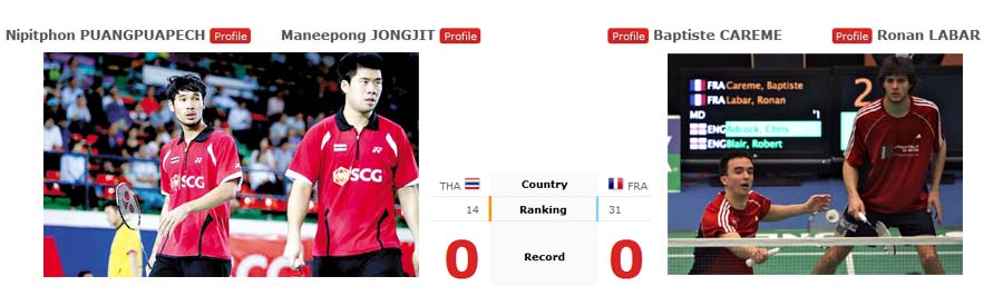 [MD] เอ มณีพงษ์-ต้นน้ำ นิพิธพนต์ vs Baptiste CAREME-Ronan LABAR แข่งคู่ที่ 3 โดยคู่แรก แข่งเวลา 22.00 น. (คอร์ท 1)