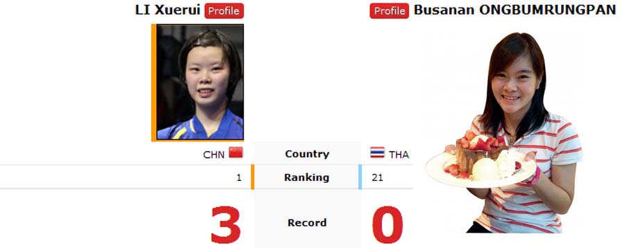 [WS] LI Xuerui vs Busanan ONGBUMRUNGPAN แข่งคู่ที่ 2 โดยคู่แรก แข่งเวลา 14.00 น. (คอร์ท 1)
