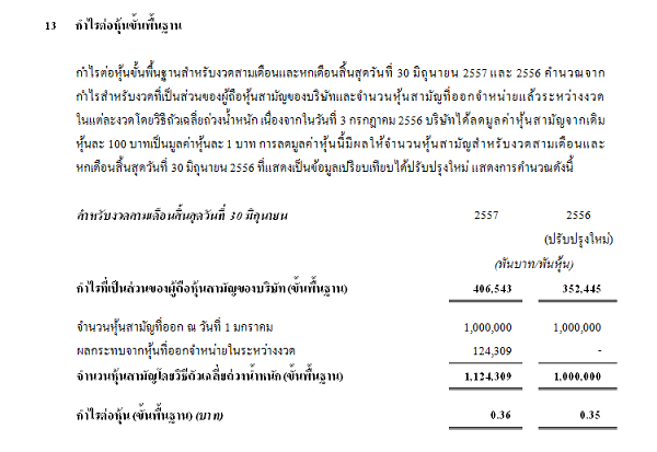 และจำนวนหุ้นที่ใช้คำนวณ EPS จึงใช้ 1,124,309 หุ้น