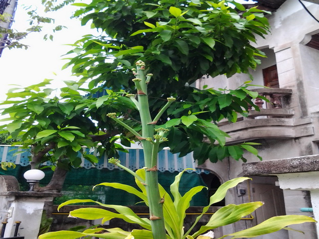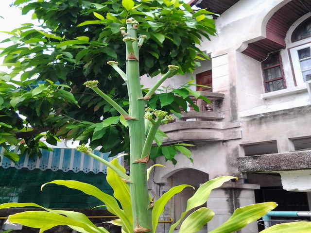 ได้ต้นนี้มาจากโครงการห้วยห้องไคร้ มาประมาณปี 2541 ถึงปัจจุบันก็ 16 ปี มีลักษณะอย่างที่เห็นเหมือนสัปรดชนิดหนึ่ง เลี้ยงมาเรื่อย ๆ ก็ไม่มีดอกไม่มีผลได้แต่เพิ่มใบขึ้นมาเรื่อย ๆ จะเอาออกทิ้งก็หลายครั้ง จู่