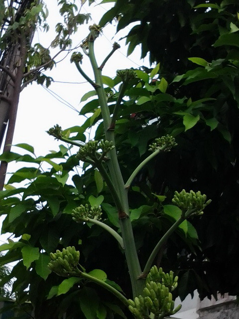 ได้ต้นนี้มาจากโครงการห้วยห้องไคร้เมื่อประมาณปี 2541 ก็เลี้ยงมาเรื่อย ๆ ค่ะ แต่ก็ไม่เห็นมีอะไรออกมาดอกก็ไม่มี มีแต่ใบและต้นที่โตอย่างช้า ๆ มาเมื่อ กค. 57 ที่ผ่านมาก็มีช่อดอกออกมาให้เห็น ก็รอจนปัจจุบัน 23 ตค. 57 ก็ยังไม่มีดอกบานออกมาให้เห็นเพียงแต่ทำท่าจะบานก็กินเวลามาเข้า 4 เดือนแล้วค่ะ ที่อยากทราบก็คือไม่รู้ชื่อ ของพันธ์ไม้ชนิดนี้ และอายุของพันธ์ไม้จะยาวไหม