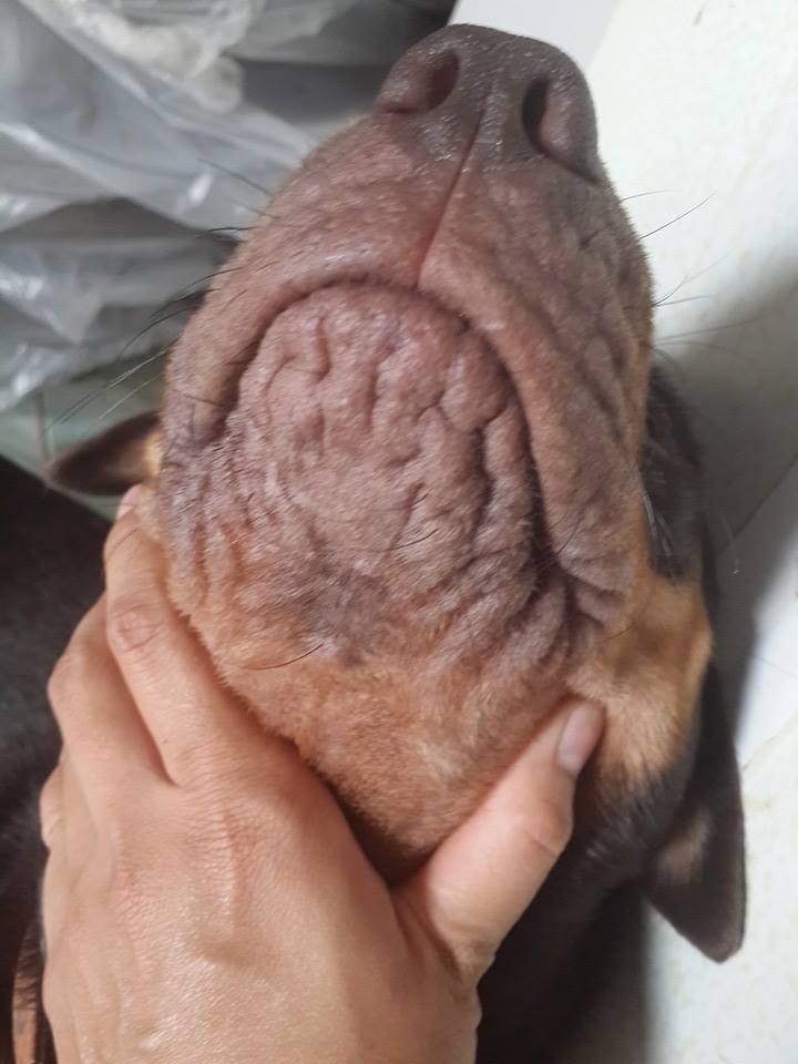 เราก็มานั่งสังเกตปากหมาเรา คราวนี้วิตกกังวลเลยค่ะ ปากเค้าเป็นแบบนี้มาตั้งแต่ได้เค้ามาเลี้ยง เค้าก็ไม่ได้เกา