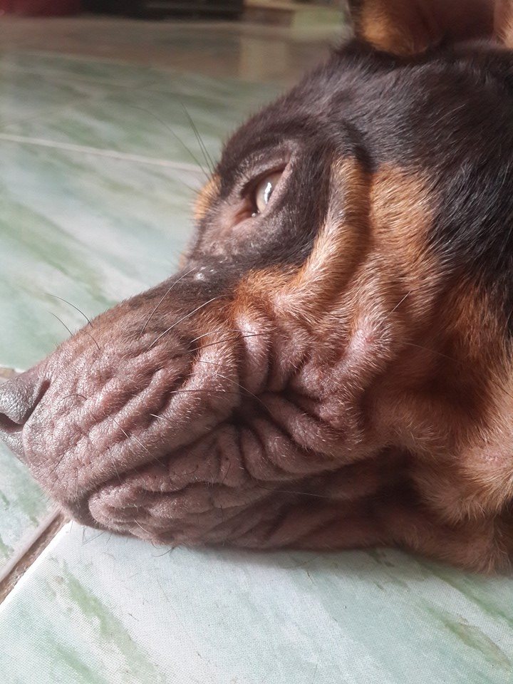 พอเมื่อวานตอนเย็นเพื่อนแวะมาเล่นด้วย ก็มาเจอน้องหมาของเรากำลังนอนอยู่ มันก็ช่างสังเกตเหลือเกิน