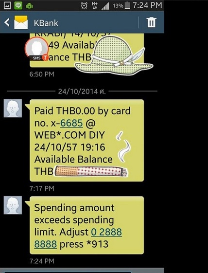 [K-Bank] โดนแฮกบัตรกับตัวจนได้ ระวังตัวกันด้วยครับ WEB*.COM DIY เรียกเก็บมา ดีน่ะ เงินไม่ถึง