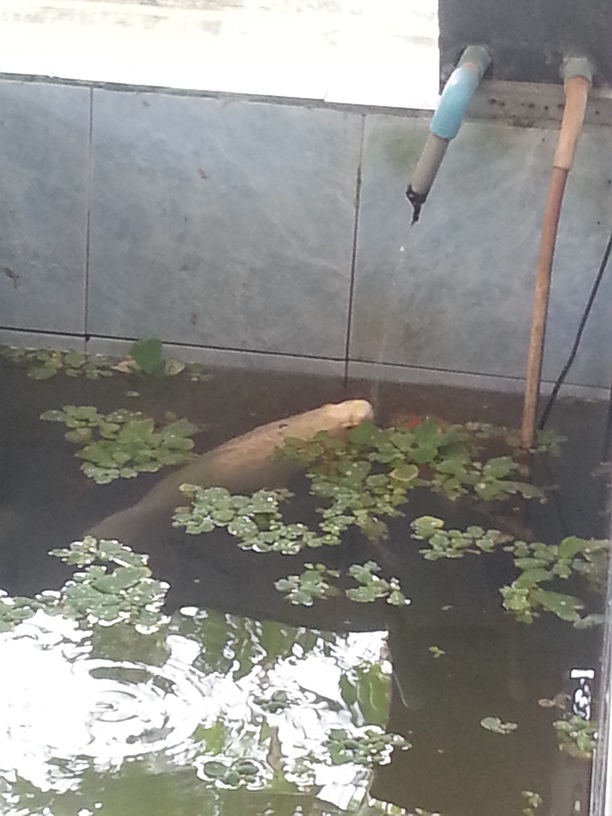 ปลาคาร์ฟตัวนี้ชอบปล่อยตัวลอยไปตามน้ำ ไม่ค่อยว่ายน้ำ จะอยู่บนผิวน้ำค่ะ ปล่อยตัวจนบางทีตัวเอียงตะแคง แต่ไม่หงายท้อง เพราะเค้าจะสะบัดครีบตั้งตัวไว้ค่ะ บางทีปล่อยตัวจนลอยชนนั่นชนนี่ก็ยังเฉย ปลาตัวอื่นมาตอ
