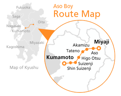 ถ้าไม่ได้จะขึ้นภูเขาไฟ Aso มีเส้นทางท่องเที่ยวไหนแนะนำมั้ยคะ ที่จะได้นั่งรถไฟ Aso boy ลองหาข้อมูลตามเมืองต่างๆที่รถไฟวิ่งผ่านแล้วเหมือนเป็นเมืองเล็กๆทางผ่านทั่วไปเท่านั้น เพราะเห็นรีวิวรถไฟแล้วน่ารักมากก อยากจะขึ้นบ้าง